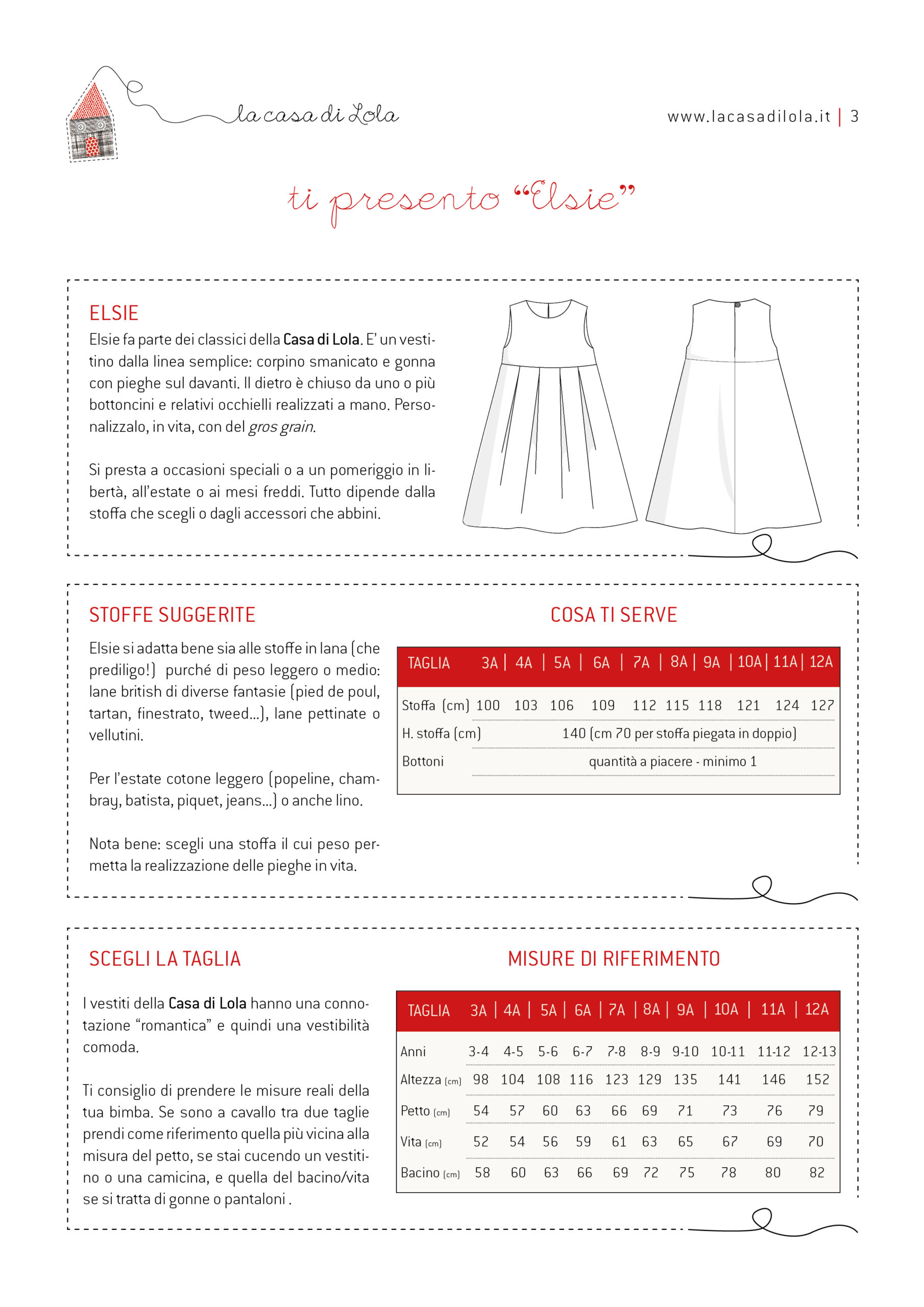 - quantità necessaria e suggerimenti sulla stoffa