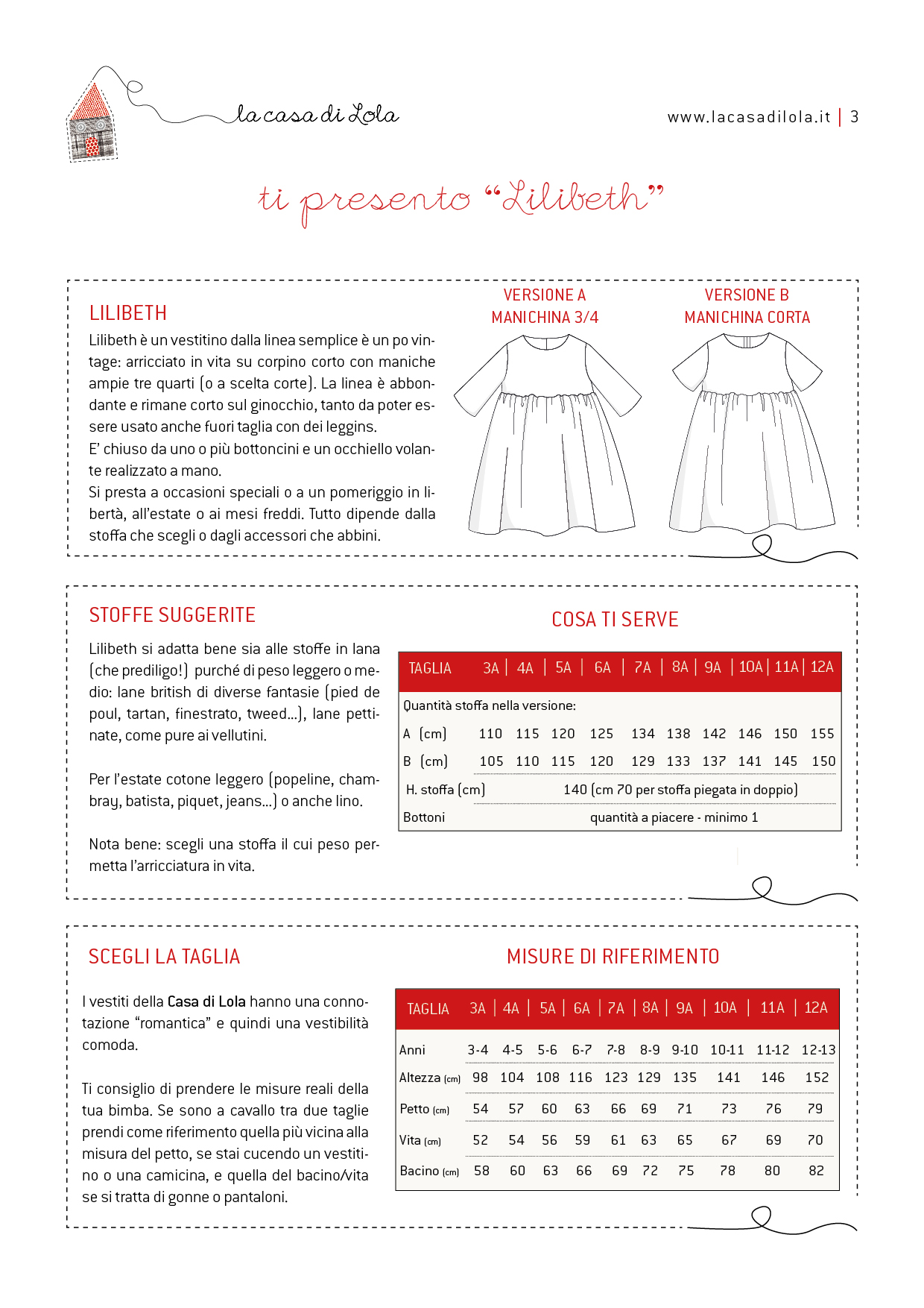 - quantità necessaria e suggerimenti sulla stoffa