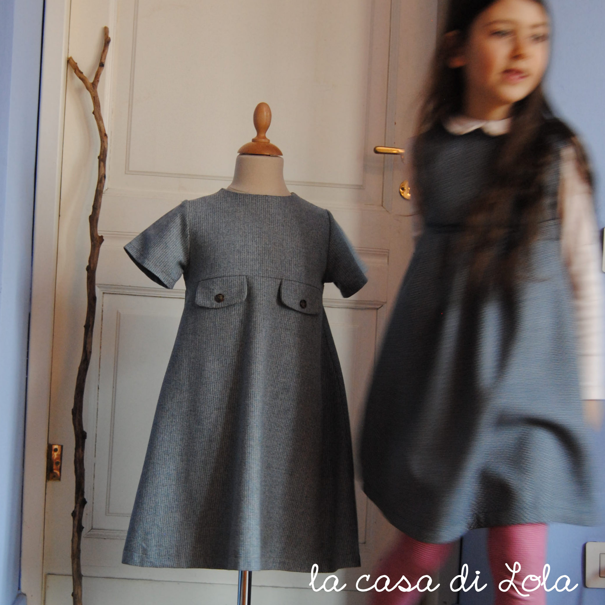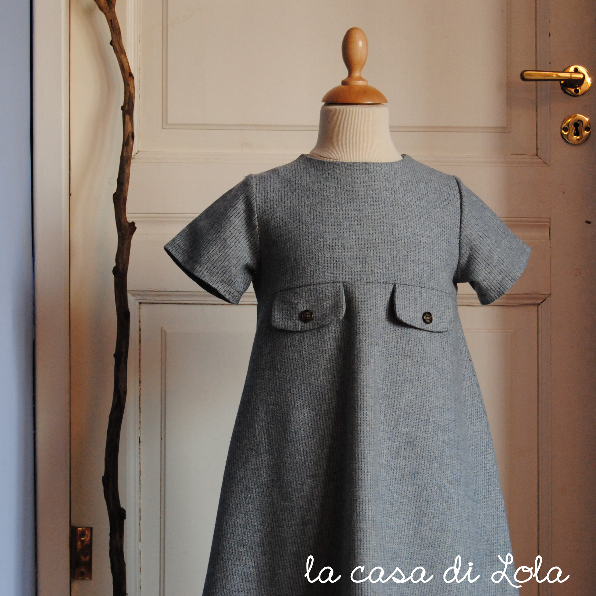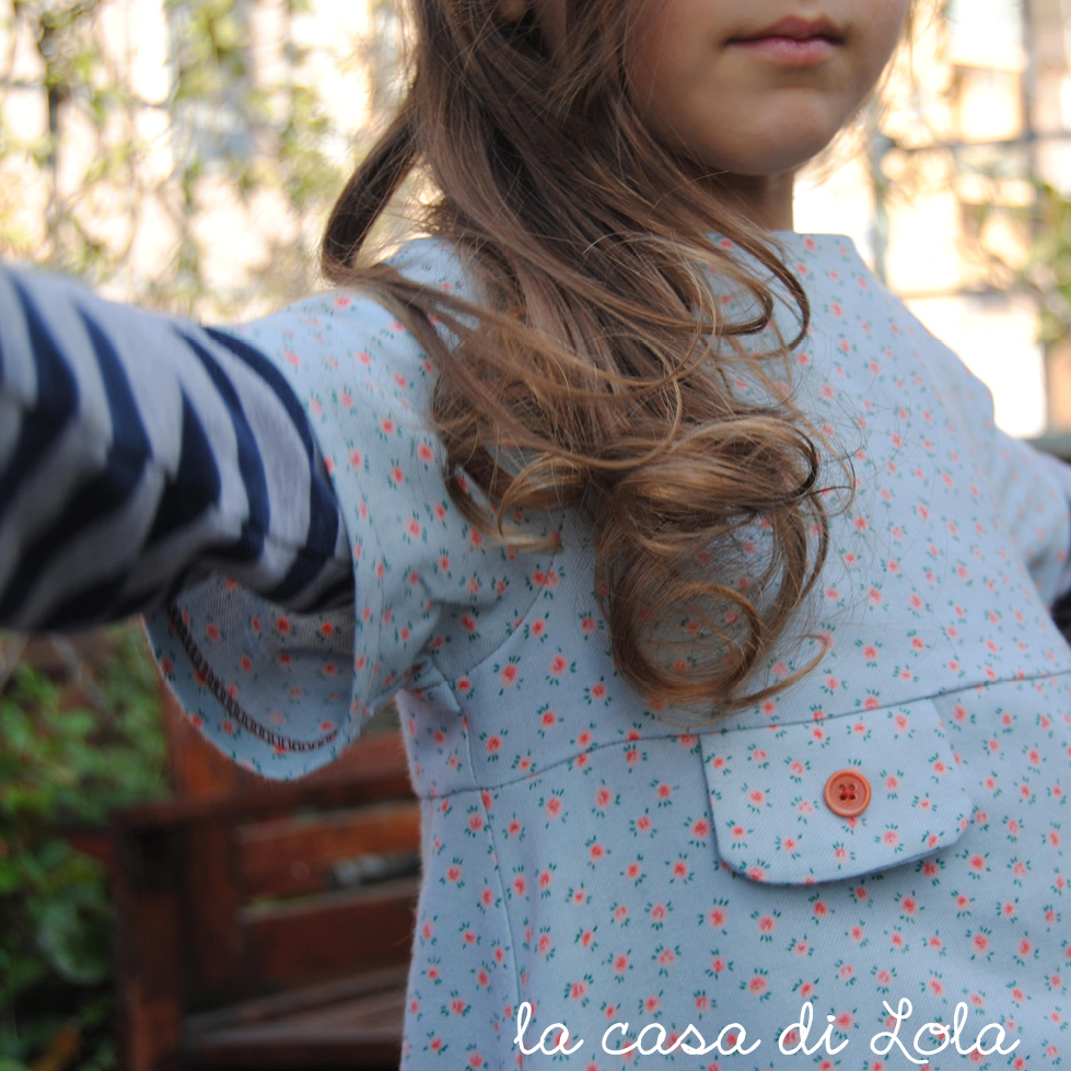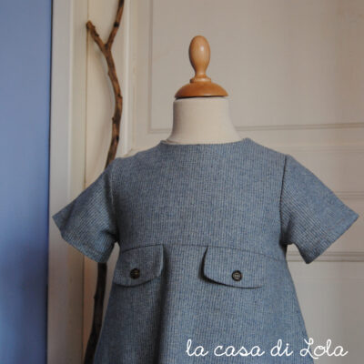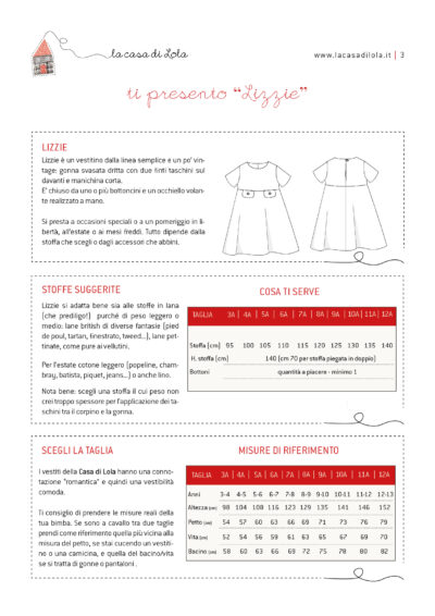 Lizzie è il cartamodello di un abitino con manichine corte, gonna svasata e finti taschini applicati al corpino.