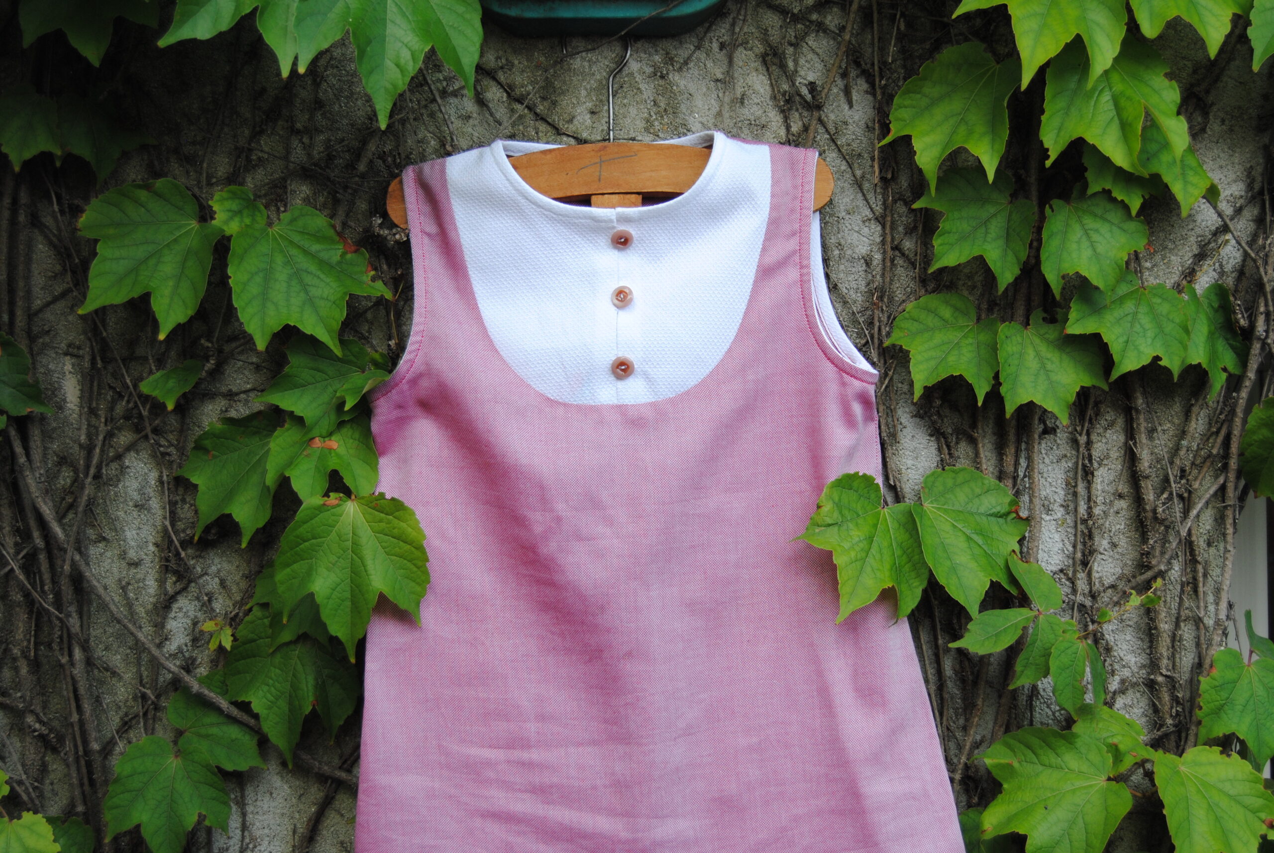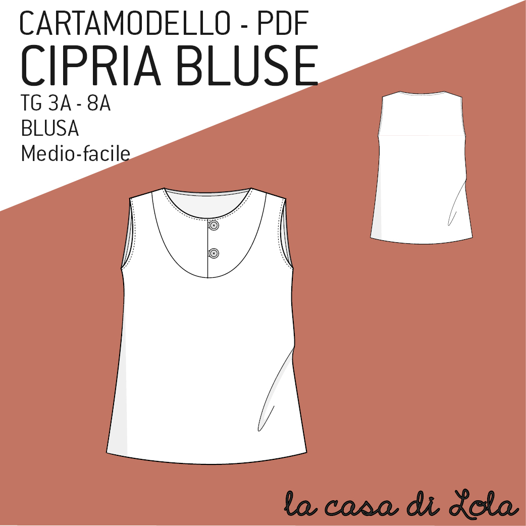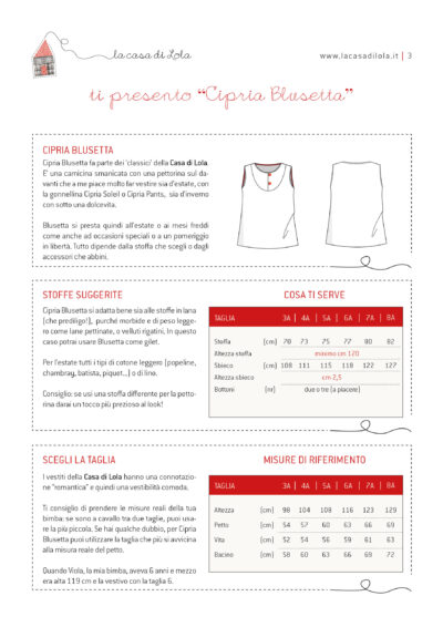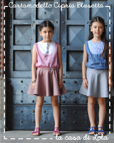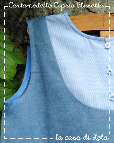 Cipria Blusa è il cartamodello di una camicina smanicata con una pettorina abbottonata sul davanti.