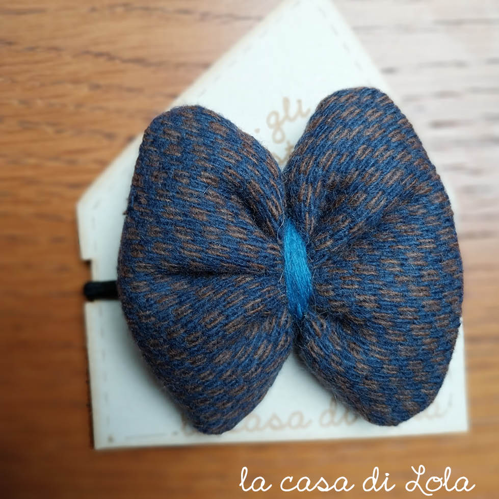 Elastico per capelli con delizioso fiocchetto imbottito blu e marrone