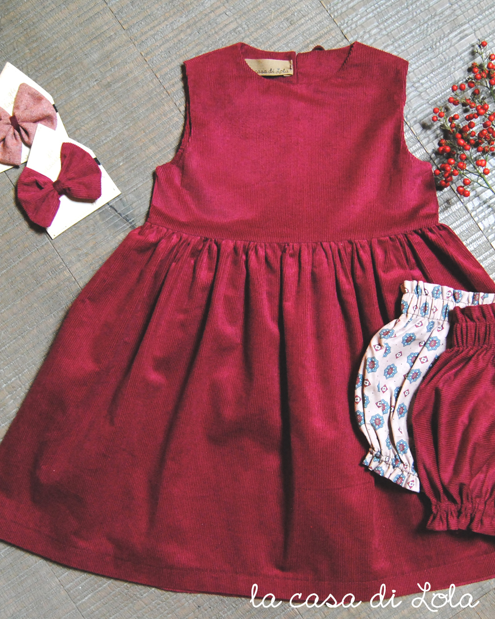 ♥ Tessuto – velluto a righine rosso – per realizzare l’abito (seleziona la taglia sotto)