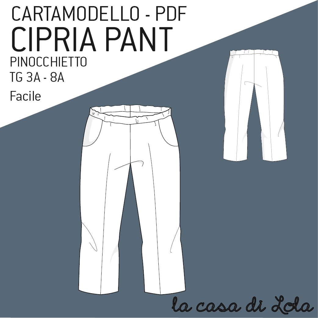 Cipria Pant è il cartamodello di un pinocchietto dalla linea semplice, tasche all’americana e cinturino elastico in vita.